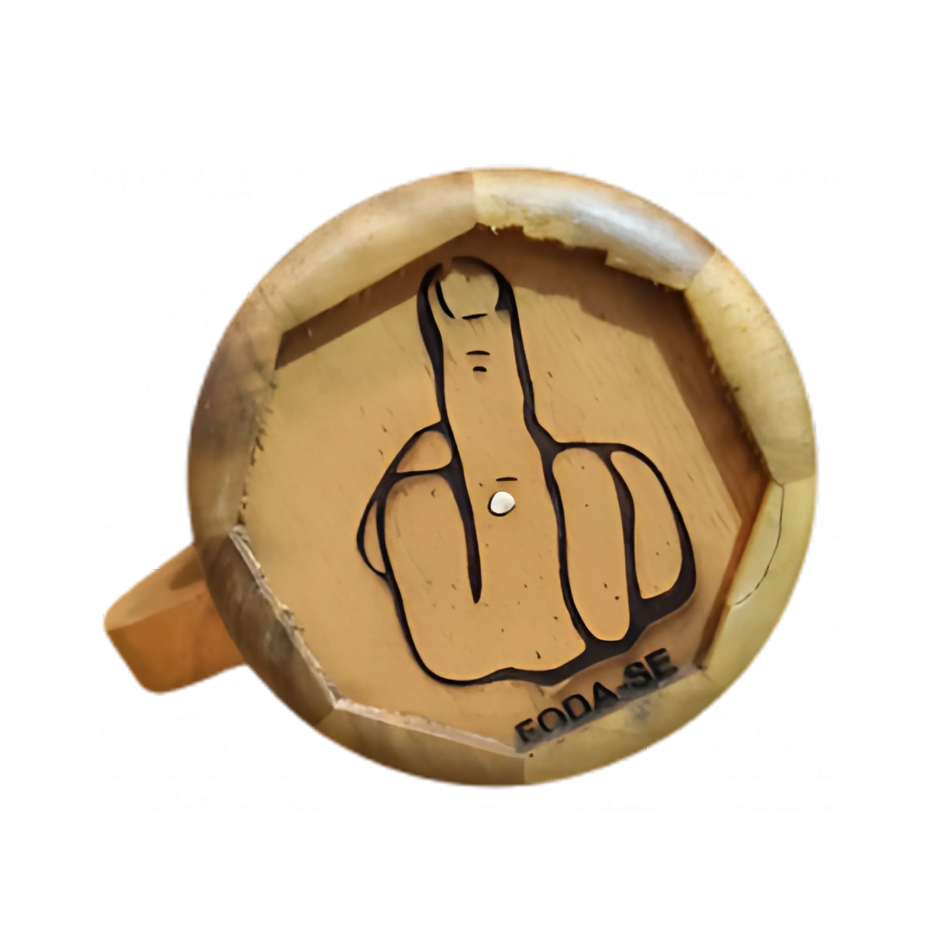 Chegou a Caneca Dedo do Meio 500ml, feita para quem não perde a oportunidade de criticar sua bebida! Com exterior em madeira e interior em alumínio, ela oferece o equilíbrio perfeito entre rusticidade e praticidade. O acabamento em verniz acetinado dá um toque sofisticado, deixando a caneca ainda mais única.